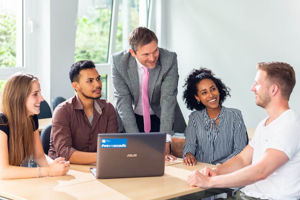 Sie haben eine Start-up-Idee und möchten Ihren Gründungstraum bereits als Studierender verwirklichen? Dann kombinieren Sie Ihr accadis-Studium mit dem Building Entrepreneurs!-Programm. Damit entscheiden Sie sich für Gründen UND Studieren gleichzeitig. Bereits während des Studiums entwickeln Sie – betreut von einem Business Coach aus dem accadis Institute of Entrepreneurship und einem Academic Guide der accadis Hochschule – Ihr Geschäftsmodell als festen Bestandteil des Studiums.
